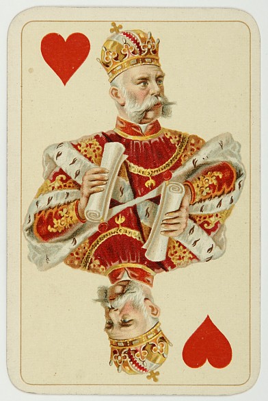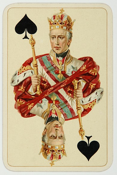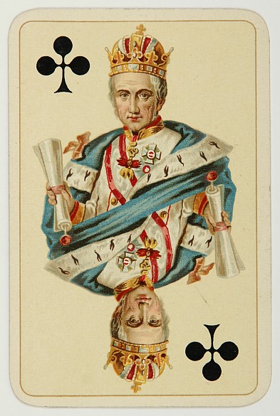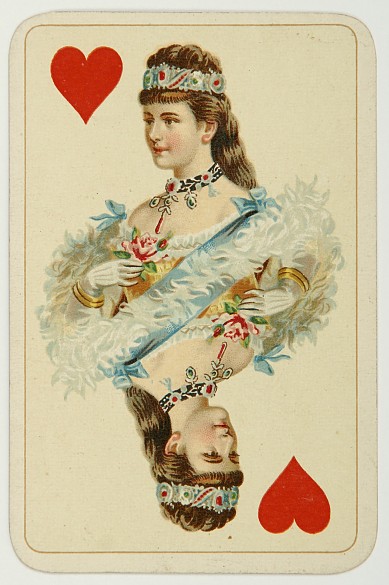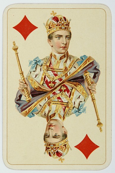 Emperor Franz Joseph as King of Hearts, Empress Elisabeth as Queen of Hearts. Playing card games with crowned heads was the successful idea of the Viennese playing card company Piatnik.