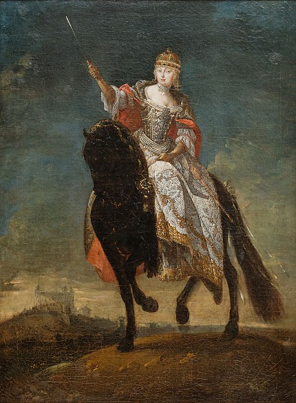 However, the traditional coronation ceremonial had to be adjusted for reasons of propriety. Because she was expecting a child at the time, Maria Theresa was unable to ride in the procession through Vienna and was instead carried in a sedan chair. And at the traditional mounted ceremony at the Coronation Mound in Pressburg, during which she brandished the coronation sword in all four cardinal directions as a sign of her willingness to defend the kingdom against its foes, she rode side-saddle. Nonetheless, this did little to weaken the message of strength that she was seeking to send forth. It was clear that Maria Theresa’s sex was not going to constitute an impediment to her exercise of power.