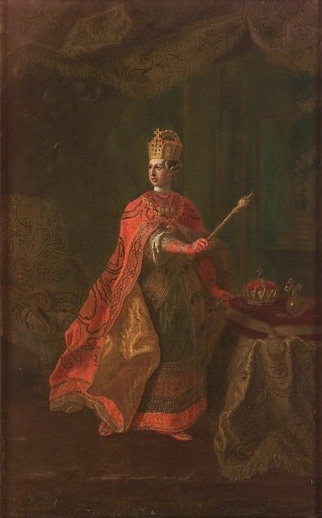 aus: Johann Wolfgang v. Goethe: Aus meinem Leben. Dichtung und Wahrheit (Band1, 5. Buch).Der junge König schleppte sich in den ungeheuren Gewandstücken mit den Kleinodien Karls des Großen, wie in einer Verkleidung, einher, so dass er selbst […] sich des Lächelns nicht enthalten konnte.