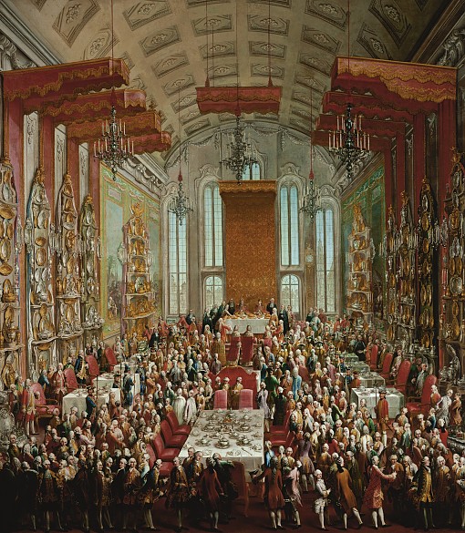 Daran schloss sich das Krönungsmahl im Frankfurter Rathaus, dem Römer, wo die Großen des Reiches die traditionellen Erzämter ausübten, also symbolhaft den soeben gekrönten Herrscher an der Tafel bedienen sollten. Um diese persönliche Unterwerfung vor dem Herrscher zu vermeiden, glänzten jedoch die meisten Fürsten des Reiches durch Abwesenheit, und ihre Plätze an der Tafel blieben leer, was die sinnentleerte Formelhaftigkeit des Rituals in seiner Absurdität noch steigerte.