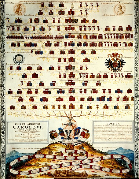 Je nach politischer Situation wurden Ahnen über komplizierte Verwandtschaftslinien usurpiert: Der habsburgischer Anspruch auf das Römisches Kaisertum wurde durch eine im Zeitgeist des Humanismus propagierte Abstammung von Heldengestalten der Antike unterstützt: Die Liste der habsburgischen 'Vorfahren' liest sich wie ein 'Who is Who' der Antike und führt von Julius Caesar bis nach Troja. Und von dort war es über die alttestamentarischen Propheten dann nicht mehr weit zu Adam und Eva.
