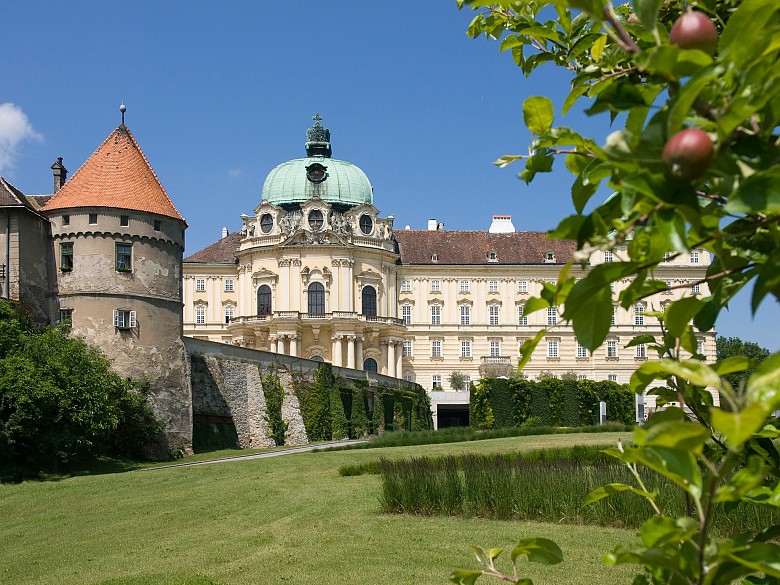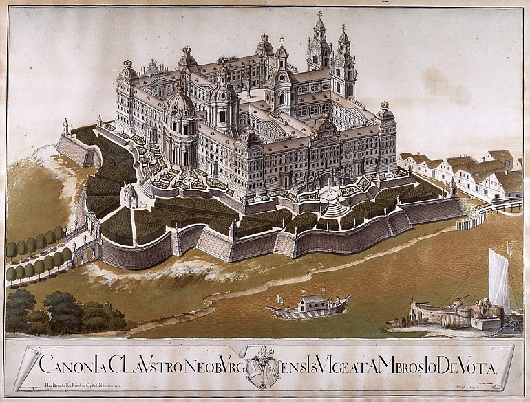 Die mittelalterliche Klosteranlage sollte einem dem Schema des Escorial entsprechenden barocken Klosterpalast weichen. Einen besonderen Akzent hätte die geplante Anlage durch neun, von vergrößerten Nachbildungen der Kronen des Hauses Österreich bekrönten Kuppeln erhalten. Nach dem Tod des Kaisers 1740 wurden die Bauarbeiten eingestellt, das Projekt blieb ein Torso, der trotz seiner Unfertigkeit dennoch eine Ahnung gibt vom ideologischen Programm habsburgischer Macht.