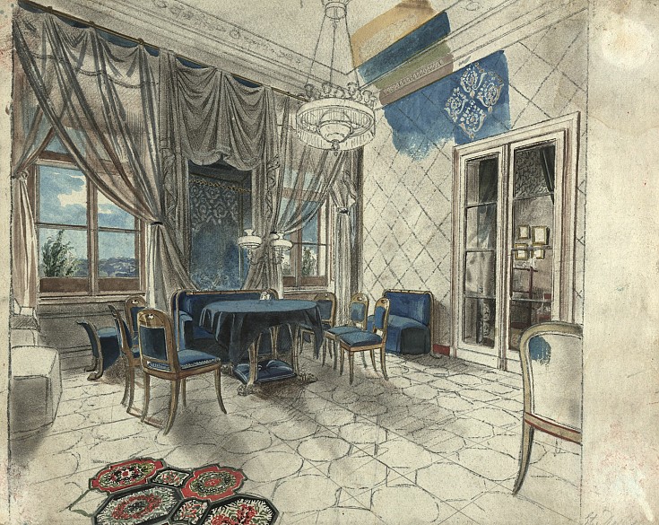Die zeitgenössische Wohnkultur am Wiener Hof ist in mehreren Aquarellserien dokumentiert, die detailgenau die Ausstattung verschiedener Privaträume der kaiserlichen Familie wiedergeben. Sie ließen sogar in Schlafzimmer und Toilette blicken und gaben Details des ,biedermeierlichen‘ Hoflebens preis. Später wurden solche Darstellungen von Innenräumen auch von bürgerlicher Seite in Auftrag gegeben – das Wohnen rückte allgemein immer stärker in den Mittelpunkt des Interesses.