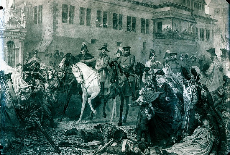 Die Völkerschlacht bei Leipzig im Oktober 1813 endete mit einem blutigen Sieg der Alliierten über Napoleon. Die Truppen des Kaisers der Franzosen wurden daraufhin bis nach Paris zurückgedrängt. Napoleon versuchte zwar noch Widerstand zu leisten, doch im Frühling 1814 zogen seine Gegner in Paris ein. Napoleon musste am 6. April 1814 abdanken. Als Trostpflaster gaben ihm die Alliierten die Mittelmeerinsel Elba als eigenes Fürstentum und schickten ihn dorthin ins Exil. Die alten europäischen Mächte wähnten sich damit als Sieger in den jahrelangen kriegerischen Auseinandersetzungen mit Napoleons Heeren. Zur Neuordnung und "Restauration", also Wiederherstellung der alten Ordnung vor der Französischen Revolution, traten sie im September 1814 zum Wiener Kongress zusammen.