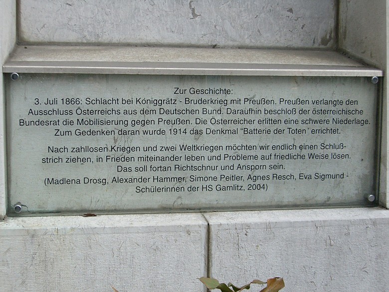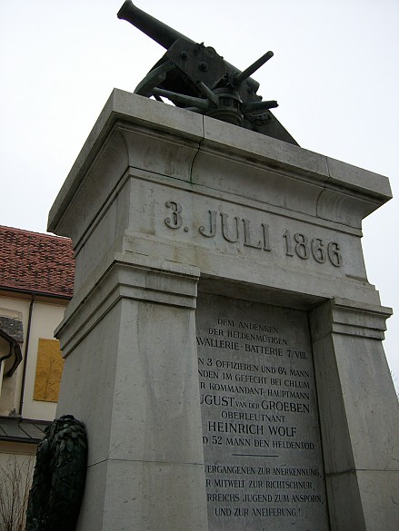 Trotz der verheerenden österreichischen Niederlage wurde die Schlacht von Königgrätz – wie so viele andere Kriege – für verherrlichende Darstellungen benutzt. Das abgebildete Denkmal ist nur ein Beispiel von vielen. (In diesem Fall ist wenigstens eine Zusatztafel angebracht, die aus heutiger Sicht die Ereignisse kritischer beleuchtet.) Königgrätz wird in solchen Darstellungen als tragischer Höhepunkt eines "Bruderkrieges" aufgefasst. Damit soll der rücksichtslose Einsatz von Militär zur Durchsetzung politischer Interessen gerechtfertigt werden und die Gräuel des Krieges in den Hintergrund rücken.