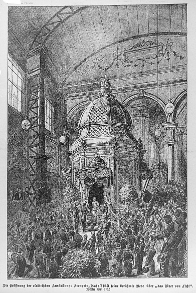 Eines dieser "Wunder der Technik" war die Elektrizität, deren Errungenschaften 1883 in einer Ausstellung dem Publikum präsentiert wurden. Kronprinz Rudolf eröffnete diese "Elektrische Ausstellung" mit "stolzen Gefühlen" über den "opferfreudigen Patriotismus einer Anzahl von Männern", die dafür eintraten, mit der Elektrizität "für das tägliche Leben neue Bahnen zu brechen". Ebenso gefeiert wurde die Eisenbahn, der Johann Strauß eine eigene Komposition widmete ("Eisenbahn-Lust-Walzer" 1836).