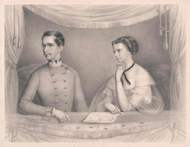 Am 24. April 1854 heiratete Franz Joseph seine um sieben Jahre jüngere Cousine Elisabeth (1837–1898), die eine Tochter einer Schwester von Franz Josephs Mutter Sophie war. Die romantischen Umstände ihrer ersten Begegnung – eigentlich war Elisabeths ältere Schwester Helene als Kaiserbraut vorgesehen – sind dank der „Sissi“-Filme allgemein bekannt.