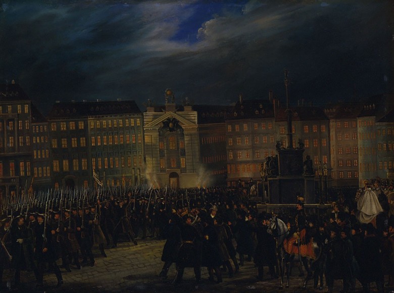 Aufgebrachte BürgerInnen stehen dem Militär am Ende einer Gasse gegenüber. Die Stimmung in der Menschenansammlung ist explosiv. Das Militär antwortet mit Schüssen in die Menge, die habsburgischen Machthaber wissen nicht so recht, wie sie reagieren sollen. Dem verdutzten Kaiser Ferdinand wird als Ausdruck seiner Verwunderung über den Volkszorn der Satz zugeschrieben: "Ja, dürfen's denn des?"