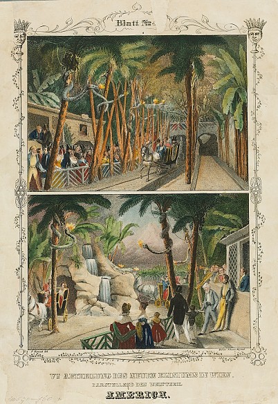 In den Vorstädten gründeten findige LokalbesitzerInnen in den 1830er-Jahren große Vergnügungsetablissements, welche die zunehmend ,unterhaltungssüchtige‘ Bevölkerung divertierten: Tivoli in Meidling, Dommayer’s Casino in Hietzing sowie die Sophiensäle, ursprünglich ein Schwimmbad. Wahre Wunderwelten wurden gebaut: Der Apollosaal in Schottenfeld verfügte über künstliche Teiche mit Schwänen und Wasserfällen, im Neuen Elysium in der Johannesgasse konnte man mittels Pferdeeisenbahn eine ,Weltreise‘ durch entsprechend den fünf Kontinenten dekorierte Räume unternehmen. Die immer größeren und spektakuläreren Etablissements wurden allerdings nicht mehr von allen Ständen besucht, ein Großteil der Wiener Bevölkerung konnte sich solche Vergnügungen nicht leisten. In der Ringstraßenzeit bildeten die Ballsäle einen Anziehungspunkt für bürgerliche Vergnügungen.