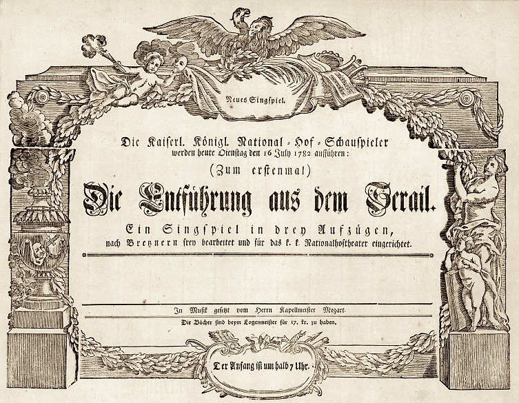 Was knapp 100 Jahre zuvor die Stadt in Angst und Schrecken versetzt hatte, verzückte jetzt das Wiener Publikum: Die Geschichte einer jungen Dame und ihrer Dienerin, die in die Gefangenschaft eines Türken geraten, gedieh zum Kassenschlager. Handlung und Setting der Oper, die am 16. Juli 1782 im Burgtheater uraufgeführt wurde, entsprachen ganz der damaligen Türkenmode, die anlässlich des 100-Jahr-Jubiläums der Zweiten Türkenbelagerung von Wien und des Siegs über die Türken allseits en vogue war. Auch musikalisch gab es Anklänge an türkische Militärmusik, an ein Janitscharenorchester mit Piccoloflöten, Triangel, Tschinellen und großer Trommel.