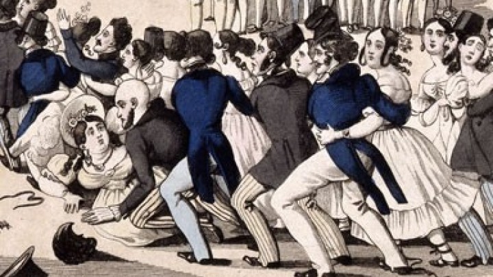 Andreas Geiger nach Johann Christian Schoeller: „Der große Galopp von Joh. Strauß“, 1839, kolorierter Kupferstich