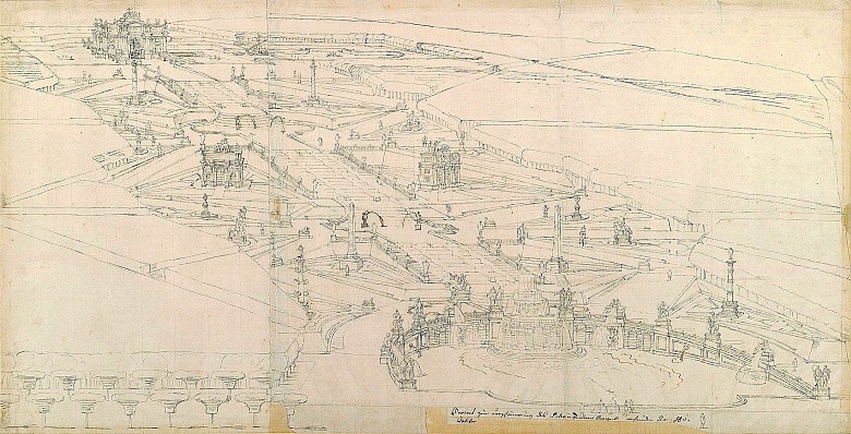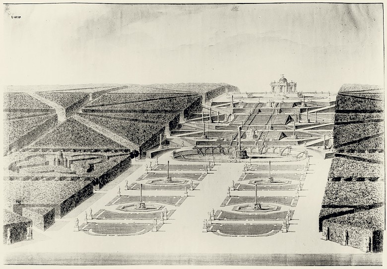 The ideal point for visitors to experience the majestic view where all the axes of the park converge is the south terrace of the palace. From here one has the best view of the most important set pieces inspired by classical mythology and invoked by the dynasty to reinforce its claim to imperial power.