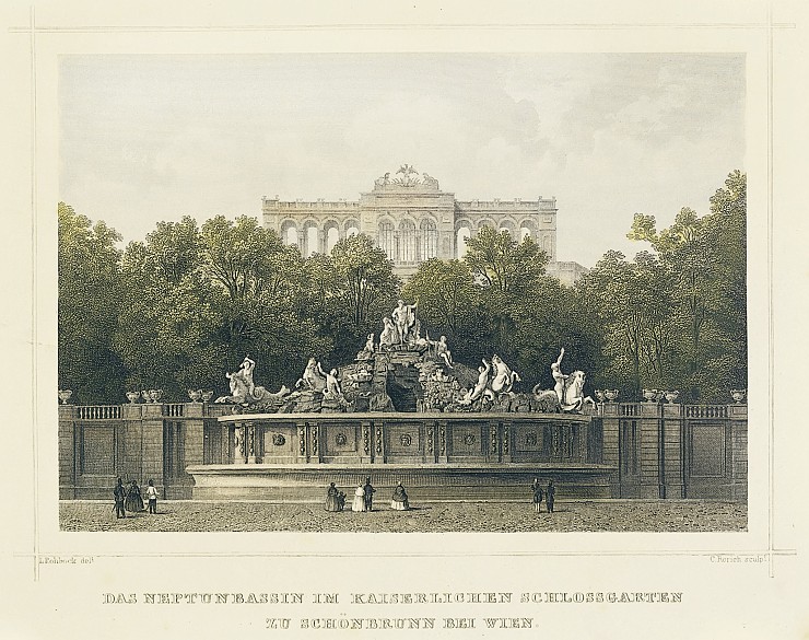 Between the Gloriette and the palace, the Neptune Fountain frames the central floral parterre as the climax of the park’s programme of statuary. Heroes, gods and rulers of classical mythology were invoked as witnesses to the Habsburg claim to the inheritance of imperial power, explicitly linking the emperorship of the House of Habsburg to that of ancient Rome.