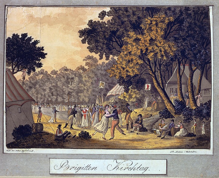 A very popular Viennese high day until the nineteenth century was the St Brigitta Fair. From the 1730s onwards huge crowds including aristocratic onlookers and the ‘common people’ flocked to the Brigittenau, an area just to the north of Vienna, today the city’s twenty-third district, to attend the church service and the subsequent festivities, at which there was ‘dancing, gambling, feasting and carousing’ as described in an account from 1779. It was celebrated as a major public festival until 1847.