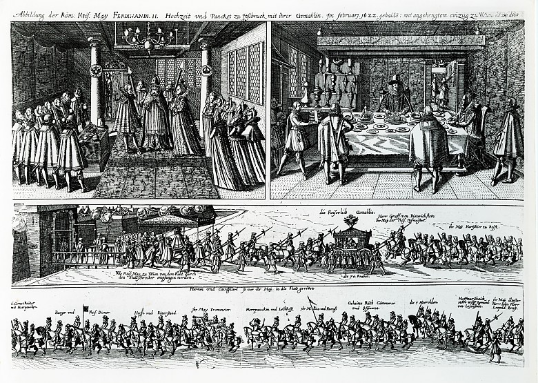 After the death of his first wife in 1616 the 44-year-old Ferdinand, who had in the meantime become Holy Roman Emperor, married Eleonora of Mantua (1598–1655) in 1622. His bride was twenty years his junior.