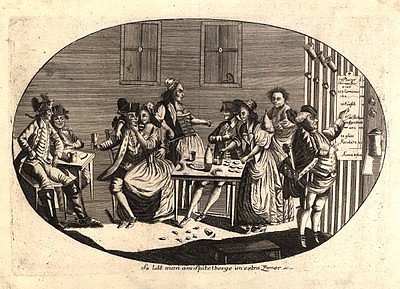 Alcoholic drinks were served in inns (Gasthäuser), which specialized in either beer or wine and also offered additional services such as beds for the night and fodder and stabling for horses. Taverns (Schenken), some of which also served as staging posts for mail-coaches, were important meeting-places for the inhabitants of both towns and villages: they were where infomation was exchanged, assemblies held and all kinds of occasions celebrated – weddings, baptisms, dances and so on. Because inns and taverns were also places where people might discuss politics and the ruling classes in a critical manner, they were regarded with suspicion by the authorities. They suspected that taverns were places where people gambled, dealt in stolen goods and indulged in immoral behaviour, while making use of the inns as places to recruit soldiers. The main concern of the authorities was to bring ‘order’ to the inns and taverns and to the towns in general: landlords were required, among other things, to check the passes issued to beggars and strangers, and to report people attending Protestant church services.
