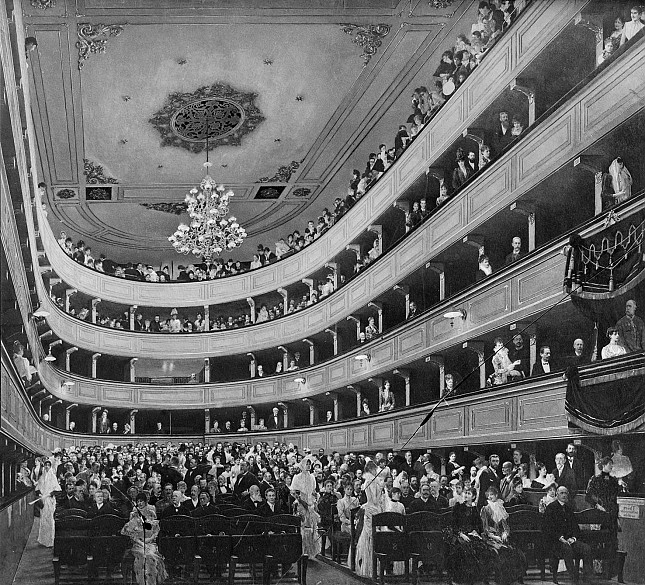 The last performance in October 1888 – of Goethe’s Iphigenie auf Tauris – was a melancholy occasion: the Viennese audiences loved the old wooden theatre despite its barn-like appearance. It seems that they were not bothered by its draughtiness or by its cramped dimensions which meant that the last of the 1,200 visitors who had squeezed into its auditorium were not able to leave until a good hour after the performance had ended.