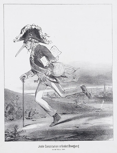 The battle for ‘human rights’ and political participation marked the second half of the nineteenth century as much as the social imbalances, which had increased in the course of industrialization: unemployment, impoverishment and alcoholism endangered the lives of many urban dwellers. The huge influx into the towns – the population of Vienna grew by some 43% between 1827 and 1847 – resulted in large numbers of unemployed. In addition many jobs were ‘rationalized’, with human labour being replaced by machines. Agriculture was unable to provide sufficient food for the growing population. At the same time there had grown up among the middle classes financially powerful social groups who were materially equal to the aristocracy and were demanding the same rights. Events abroad, such as the February Revolution in France and the uprising led by Louis (Lajos) Kossuth in Hungary, became a model for the 1848 revolution in Austria. In petitions and in the March Revolution the population vehemently demanded political participation, and end to censorship, and the resignation of Metternich, who had come to epitomize the absolutist system. The Habsburgs immediately complied with all of these demands, but not for all sections of the population. The battle for political participation continued. There followed a turbulent period of social upheaval and the formation of parties, until universal franchise was eventually achieved.