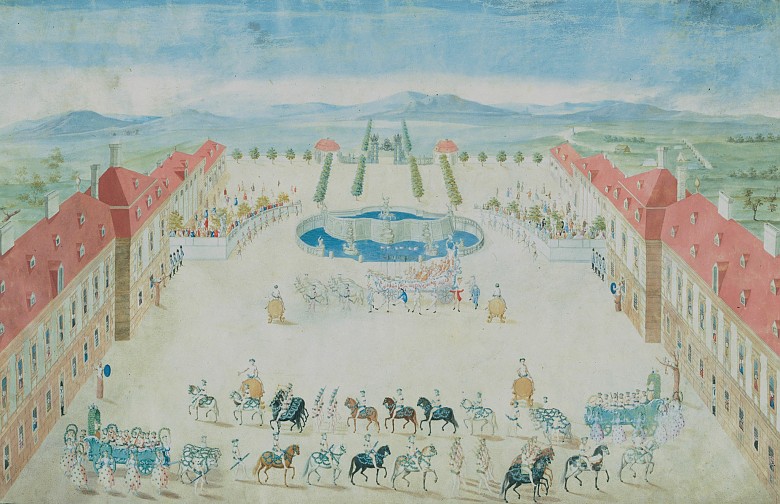 In 1754, Schloss Hof was the venue for a spectacular festival given in honour of Maria Theresa and Franz Stephan aimed at showing them the attributes of the estate, for Prince Eugene’s heirs were hoping that the imperial couple would buy the property. The festival lasted three days, and highlights included a trip in festively-decorated boats on the River March to musical accompaniment, as well as a Venetian water carousel on the surrounding lakes, where guests were carried in gondolas to a Lusthaus (summer house) on an artificial island. The imperial couple were seen off with a Bacchanalian procession involving the rural population, underlining the joys of country life.