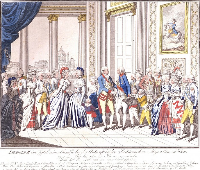 Maria Luisa (1745–1792) was the daughter of the Bourbon monarch Charles of Naples and Sicily, who ascended the Spanish throne as Charles III in 1759. While still a small child, Maria Luisa was promised to a prince of the Habsburg-Lorraine dynasty. This was in keeping with the renversement des alliances, the new alliance policy pursued by Maria Theresa which aimed at rapprochement between the houses of Habsburg and Bourbon, traditional arch-enemies in the struggle for supremacy in Europe. To reinforce the treaties the children on both sides were betrothed to one another. Originally Karl Joseph, Maria Theresa’s second son, had been intended for this union, but when he died at a young age this important match was not abandoned, with the next-born son, Leopold, moving up to take his late brother’s place.