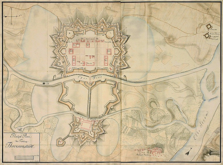 Theresienstadt was built as a fortress town between 1780 and 1790 under Joseph II. The huge construction, which in the event of war was to accommodate nearly 15,000 troops, consists of several sections. In addition to the actual fortress town, the location of the River Ohře gave rise to the so-called Small Fortress.