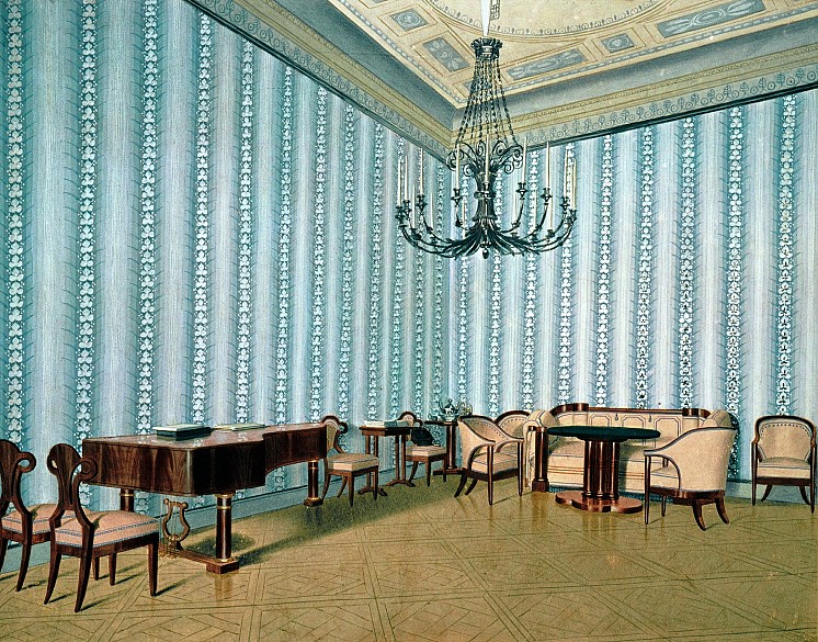 The new-style Viennese furniture was used to furnish the private apartments of the second son of Emperor Franz II (I) and his wife at Laxenburg – too modish in the opinion of Count Czernin, the acting head of the Court household.