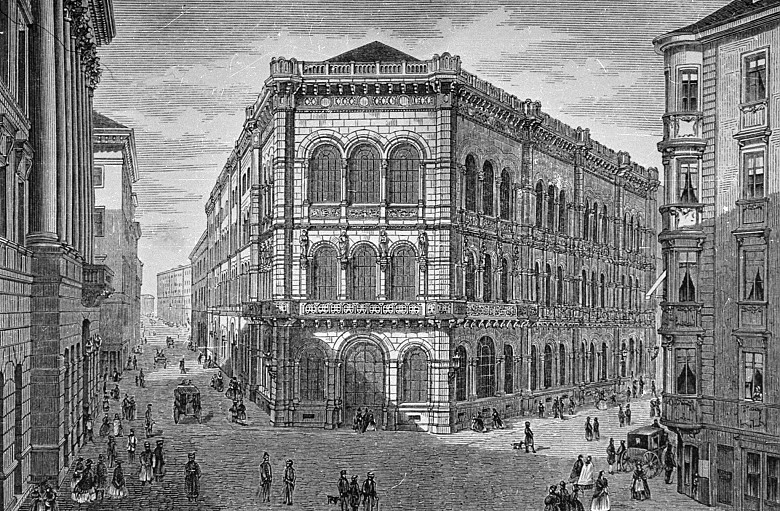 The building in the centre of Vienna known today as the Palais Ferstel originally housed the Austro-Hungarian National Bank and the Stock Exchange as well as bazaar and a café popular with artists and men of letters. The palace was built in the 1850s to plans provided by the architect Heinrich von Ferstel. This prestigious building in the style of those put up along the Ringstrasse boulevard still catches the eye today because of the use of Venetian and Florentine elements in its design.