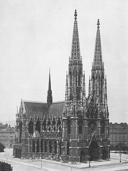 The Votivkirche was erected between 1855 and 1879 on the initiative of Archduke Ferdinand Maximilian to designs by Heinrich von Ferstel. The church was intended to commemorate the narrow escape of Emperor Franz Joseph in the attempt on his life made by Libényi in 1853. The neo-Gothic structure was strongly influenced by the model of the French Gothic cathedrals. It was begun shortly before the expansion of the city and the levelling of the city walls and later integrated into the Ringstrasse ensemble.