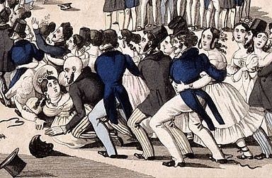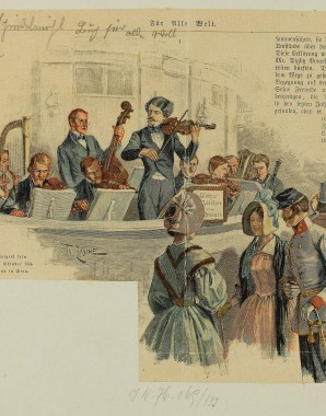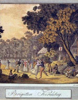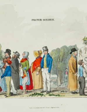 Maria Theresa, her ladies-in-waiting, her dressmaker and probably even the latter’s maidservant all had something in common: their love of dancing. The Empress diverted herself at Court balls in the Redoutensälen, and the Court’s routine was punctuated by Church ceremonies and feast days. The lower social orders took their pleasures at the ‘Hetz’ amphitheatre, where animal-baiting took place, but they also shared the Empress’s predilection for dancing. In the heyday of the waltz in Vienna this passion seemingly broke all social boundaries. With an increase in leisure time and the weakening of traditional structures a new culture of pleasure arose for a broad spectrum of the populace, taking over from the courtly festivities of the Baroque era. Large numbers of people went to dances, coffee houses and visited the attractions in the Prater.